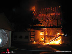EBHAUSEN (DEUTSCHLAND): Gegen 22:30 Uhr des 20. August 2017 wurden Feuerwehr und Rettungsdienst zu einem Vollbrand einer Scheune mit direkt angrenzendem Wohnhaus alarmiert. Die Feuerwehr Ebhausen war in binnen weniger Minuten am Einsatzort in der Warterstraße und begann umgehend mit der Brandbekämpfung.