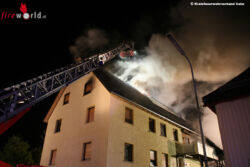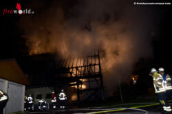 Gleichzeitig wurde die Feuerwehr Nagold mit der Drehleiter zur Einsatzstelle hinzugerufen. Beim Eintreffen der ersten Feuerwehrleute befand sich die Scheune bereits im Vollbrand. Zu diesem Zeitpunkt waren glücklicherweise keine Personen mehr im Wohngebäude. Das Feuer griff über den Dachstuhl auch auf das Wohnhaus über. Durch den entstandenen offenen Dachstuhlbrand musste durch die Drehleiter die Dachhaut geöffnet werden um an den Brandherd zu gelangen. Aufgrund der großen Rauchentwicklung konnte nur unter schwerem Atemschutz gearbeitet werden. Daher wurde zur Verstärkung die Feuerwehr Calw mit weiteren Atemschutzgeräten nachalarmiert. In der ersten Phase waren fünf Atemschutztrupps zur Brandbekämpfung im Einsatz.