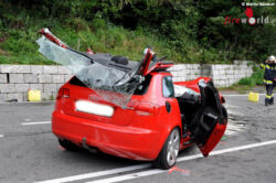 Ktn: Pkw kracht auf der B111 bei Emmersdorf gegen Böschungsmauer → zwei Eingeklemmte