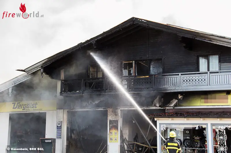 Ein Großaufgebot der regionalen Feuerwehren und des Roten Kreuzes, darunter auch die ehrenamtlichen Schnell-Einsatz-Gruppen der BRK-Bereitschaften, waren mit Alarmstufe B4 im Einsatz; die Werkstätte steht direkt neben einer Tankstelle.