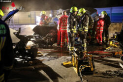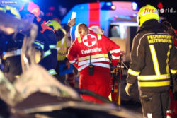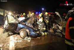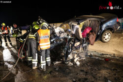 „Es war so, dass wir zwei Fahrzeuge vorgefunden haben, welche frontal zusammengefahren sind augenscheinlich. Das eine Fahrzeug war ein Bus, das andere war ein normaler Pkw, der auf der Betonleitwand stand und eine Person war eingeklemmt. Wir haben die Person mit dem hydraulischen Rettungsgerät aus dem Fahrzeug gerettet. Er war schon stark eingeklemmt, aber durch das rasche Eintreffen und die Zusammenarbeit von der Feuerwehr Nettingsdorf und der Feuerwehr Pucking-Hasenufer hat das super funktioniert und ist das rasch gegangen,“ schildert Mario Steininger, Einsatzleiter der Feuerwehr Nettingsdorf.