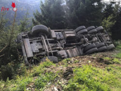 Da der Lkw an einer sehr engen Stelle liegt, wird die Bergung erst am nächsten Tag (22. August), durchgeführt. "Es besteht keine Gefahr für die Umwelt, das wurde von uns kontrolliert", so der Einsatzleiter OBI Wolfgang Hirt.