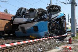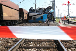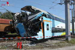 Oö: Spektakuläre aber noch glimpfliche Kollision zwischen Güterzug und nagelneuem Personenzug in Linz