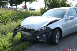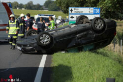 STEINHAUS BEI WELS (OÖ): Ein Auto hat sich Donnerstagnachmittag, 24. August 2017, nach einem Verkehrsunfall auf der Pyhrnpass Straße in Steinhaus (Bezirk Wels-Land) überschlagen. Der Unfall ereignete an der Kreuzung der Pyhrnpass Straße mit der Eberstalzeller- beziehungsweise Haidstraße sowie der Unterhartstraße in Steinhaus.