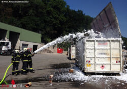 ST. PÖLTEN (NÖ): Durch einen lauten Knall wurde zu Mittag des 25. August 2017 ein Mitarbeiter einer Entsorgungsfirma im Stadtgebiet von St. Pölten auf einen Entstehungsbrand in einem auf dem Firmengelände abgestellten Container aufmerksam.