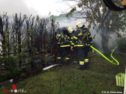 ST. PÖLTEN (NÖ): Am Morgen des 26. August 2017 wurde die Feuerwehr St. Pölten-Stadt gemeinsam mit den Feuerwehren St. Pölten-Pummersdorf und Betriebsfeuerwehr ÖBB Werk St. Pölten zum Brand einer Gartenhütte alarmiert. Bereits bei der Anfahrt war eine deutliche Rauchsäule über große Entfernung zu sehen.