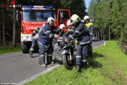 Das Motorrad schlitterte dabei über die Gegenfahrbahn in ein angrenzendes Waldstück wo es von einem Baum abrupt gestoppt wurde. "Nach der Erstversorgung des Fahrers durch das Rote Kreuz Knittelfeld, begannen die 22 eingesetzten Feuerwehrmänner aus Kleinlobming und Großlobming mit dem Bergen des verunfallten Motorrades und dem Binden der ausgetretenen Betriebsmittel", schildert Einsatzleiter, Hauptbrandinspektor Edwin Hatz.
