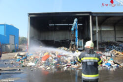 Im Wechseldienst der Atemschutzgeräteträger wurde die brennende Lagerhalle, hierbei vor allem das Dach, mithilfe der Drehleiter und dem Wendestrahlrohr gelöscht. Gleichzeitig bekämpften mehrere Feuerwehren den Brand vom Boden aus und konnten ihn so eindämmen. Erleichtert wurde dies vor allem durch das zwischenzeitlich immer stattfindende Ausräumen des gelagerten Mülls mit