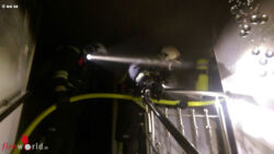 Als die Feuerwehr wenige Minuten nach der Alarmierung am Einsatzort eintraf, kam es bereits zum Flammenaustritt. Unverzüglich wurde eine Löschleitung unter Atemschutz in das Gebäude vorgenommen um den Brand zu bekämpfen. Zeitgleich wurde auch eine Löschleitung für den Außenangriff vorbereitet und das Gebäude mittels Hochleistungslüfter entraucht. Die Ursache des Brandes ist noch unbekannt. Verletzt wurde niemand.