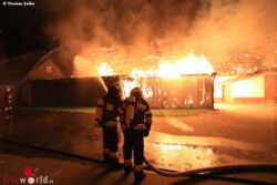 Nach stundenlangen Löscharbeiten konnten die 112 eingesetzten Männer ein Übergreifen der Flammen auf die angrenzenden Gebäude verhindern, das Wirtschaftsgebäude brannte bis auf die Grundmauern nieder.