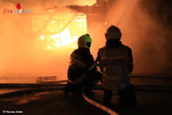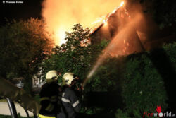 Während ein Teil der 112 eingesetzten Mann eine Zubringleitung von nahegelegenen Kobenzerbach verlegte, wurde ein massiver Löschangriff mit zahlreichen Hochdruckrohren, C-Strahlrohren und Hydroschildern in Angriff genommen, um einerseits die Flammen beim Wirtschaftsgebäude unter Kontrolle zu bringen und ein Übergreifen auf die benachbartes Wohnhaus, Garagen und ein weiteres Wirtschaftsgebäude zu verhindern, so Mayer weiter.