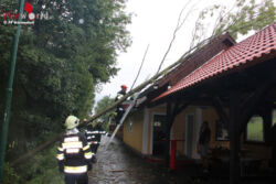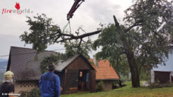 Bäume, die auf Häuser, Straßen und Stromleitungen gestürzt waren, überflutete Häuser, verschlammte und überschwemmte Straßen und abgedeckte Dächer beschäftigten die Freiwilligen Einsatzkräfte an diesem Nachmittag, bis in die späten Nachtstunden hinein.