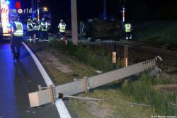 Unverzüglich konnte das erste Fahrzeug besetzt werden und an die Unfallstelle auf der Bundesstraße 17 ausrücken. Während der Anfahrt wurde der Einsatzleiter durch die Bezirksalarmzentrale informiert, dass sich der Pkw überschlagen hat und am Gleiskörper zum Stillstand gekommen ist – mindestens eine Person soll im Fahrzeug eingeklemmt sein.