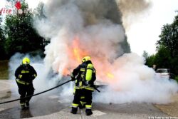 Nö: Löschversuche mit Wasserflasche – Fahrzeugbrand beim Tullner Wasserwerk