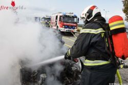 Der Fahrzeugbrand wurde von der Feuerwehr mit einer C- Löschleitung bekämpft. Aufgrund der starken Rauchentwicklung erfolgten die Löscharbeiten unter umluftunabhängigem Atemschutz. Die Freiwillige Feuerwehr Wiener Neudorf stand mit fünf Fahrzeugen und 24 Mann im Einsatz.