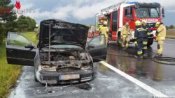 Beim Eintreffen des Rüstlöschfahrzeuges wurde ein im Frontbereich brennender Pkw vorgefunden. Durch die ersten Löschversuche von zwei Lkw-Fahrern wurde eine weitere Ausbreitung des Brandes verhindert, jedoch konnte er nicht gänzlich abgelöscht werden.