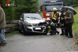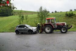 Frontalzusammenstoß zweier Pkw in einer unübersichtlichen Kurve bei regennasser Fahrbahn. Da die Rettung und Polizei schon vor Ort war und keine Personenrettung nötig war ließ er die weiteren Fahrzeuge vor der Einfahrt der engen Straße warten bis der Rettungstransportwagen von der Einsatzstelle abzog.