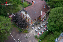 Am Einsatzort angekommen, versperrte ein Kleinbus den Einsatzkräften den Weg. Während der Einsatzleiter die Lage erkundete, stellte der Fahrer des Tanklöschfahrzeuges sein Können unter Beweis und manövrierte das tonnenschwere Einsatzfahrzeug am Kleinbus und zahlreichen Bäumen vorbei. In der Zwischenzeit konnte sich der Einsatzleiter ein Bild von der Lage verschaffen und teilte seine Gruppe ein. Aus einem Fenster des Schutzhauses drang bereits dichter Rauch, auch ein Flammenschein war zu erkennen. Der angrenzende Wald hat ebenfalls bereits Feuer gefangen.