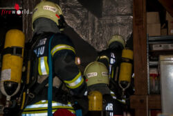 Die verbleibende Besatzung baute einstweilen die Löschleitung für den zweiten Atemschutztrupp des eben angekommen Rüstlöschfahrzeuges auf. Dieser Trupp wurde zur Brandbekämpfung und Menschenrettung in das Schutzhaus geschickt. Der beginnende Waldbrand wurde zeitgleich von der restliche Mannschaft des Rüstlöschfahrzeuges mit 3 Rohren im Außenangriff bekämpft. Um die Wasserversorgung sicherzustellen, wurde eine Zubringleitung vom Großtanklöschfahrzeug zu den beiden kleineren Tanklöschfahrzeugen gelegt. Insgesamt standen damit den Einsatzkräften 14.000 Liter Löschwasser zur Verfügung.