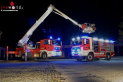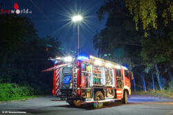 Ebenfalls in dieser Dachbox ist Rüstholz, dass in mehreren Paketen gelagert ist und den Feuerwehrkameraden die Entnahme und den Transport erleichtert.Auf der Dachbox ist eine 4-teilige Steckleiter gehaltert. Diese kann verschiedenste Einsatzmöglichkeiten abdecken. Unter anderem wurde eine LKW-Plattform der Fa. Just, die mit den Steckleiternteilen verbunden werden kann, angeschafft. Der große Vorteil liegt dabei, dass die Lkw-Plattform wenig Platz in Anspruch nimmt und individuell mit der Höhe angepasst werden kann. Im hinteren Aufbaubereich ist ein pneumatisch ausfahrbarer Teleskoplichtmast, ausgestattet mit 8 x 42 Watt LED-Scheinwerfer versenkt im Dach eingebaut. Die Bedienung erfolgt am Pumpenbedienstand über das Display.