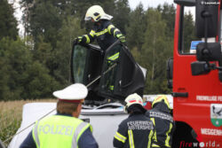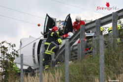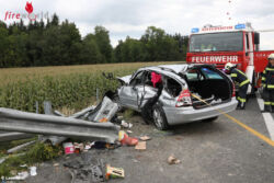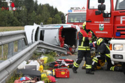 Der Unfall ereignete sich auf der Innkreisautobahn zwischen der Raststation Aistersheim und der Autobahnabfahrt Haag am Hausruck in Fahrtrichtung Passau. Ein Auto kam aus bisher unbekannter Ursache von der Fahrbahn ab, krachte gegen einen Anpralldämpfer der Leitschiene und kam seitlich liegend zum Stillstand. Die Pkw-Lenkerin wurde bei dem Unfall im Fahrzeug eingeklemmt und musste von der Feuerwehr mit hydraulischem Rettungsgerät aus dem Fahrzeug befreit werden. Insgesamt wurden bei dem Unfall drei Personen verletzt, davon eine Person schwer.