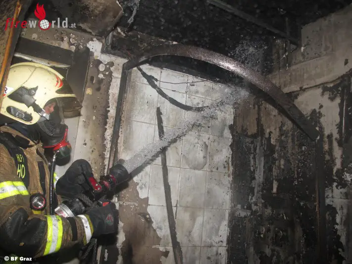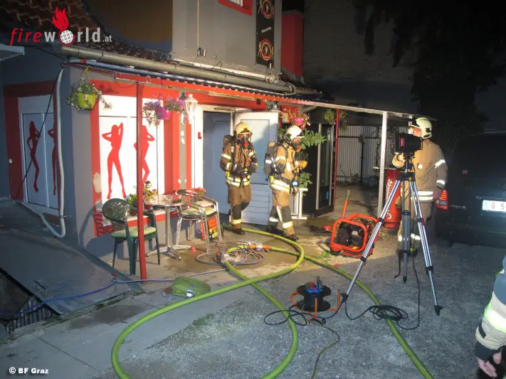 Stmk: Heißer Einsatz für die Grazer Berufsfeuerwehr → ausgedehnter Zimmerbrand im Laufhaus