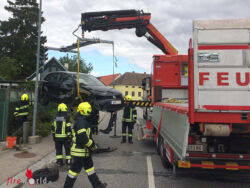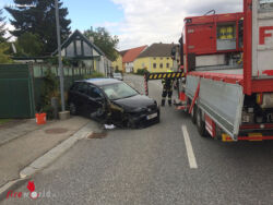 WAIDHOFEN AN DER THAYA (NÖ): Um 14:40 Uhr des 7. September 2017 wurde die Freiw. Feuerwehr Waidhofen/Thaya zu einem Verkehrsunfall in Jasnitz alamiert. Ein Pkw war gegen das Geländer des Löschteiches gekracht und stand schwer beschädigt auf der Fahrbahn.