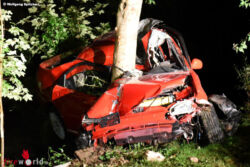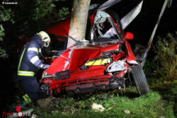 Oö: Auto wickelt sich bei Unfall um Baum → enormes Glück für Lenker in Pinsdorf