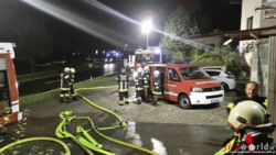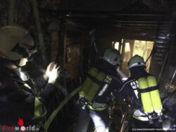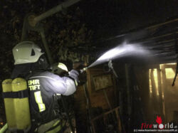 In kürzester Zeit rückte die Feuerwehr dabei mit dem TLF aus. Beim Eintreffen am Einsatzort bot sich den Einsatzkräften folgende Lage: Aus noch ungeklärten Gründen stand der Eingangsbereich einer Gartenhütte, in Flammen. Personen wurden in dem Gebäude keine vermisst. Ein aufmerksamer Nachbar bemerkte den Brand und verständigte die Besitzer und die Feuerwehr.