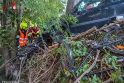 ALKOVEN (OÖ): Wenig Vorbereitungsaufwand jedoch viel Arbeit für die eingesetzten Kräfte – das waren die Rahmenbedingungen für eine interessante Einsatzübung der Freiw. Feuerwehr Alkoven am Abend des 7. September 2017. Ein Pkw hatte zwei Radfahrer gerammt. Diese klemmten nun am Rande einer steilen Böschung zu einem Bach unter dem Auto … Nach Übungsende auch etwas Außergewöhnliches: Der Lenker des Rüstlöschfahrzeuges musste im Wespenanzug einrücken …