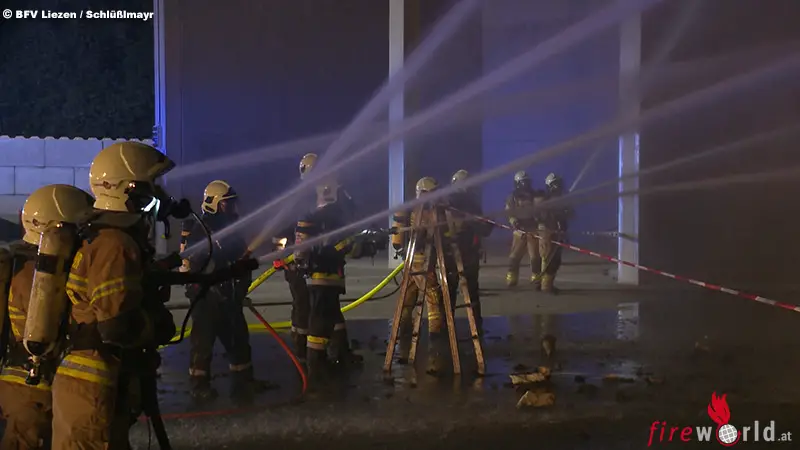 Durch den sofort gestarteten umfassenden Löschangriff unter schwerem Atemschutz konnte ein Übergreifen auf weitere Abschnitte des Lagergebäudes und v.a. ein Übergreifen auf das benachbarte Heizkraftwerk der Bioenergie Schladming – quasi in letzter Minute – verhindert werden. Auf einzelne Pfetten der angrenzenden Lagerhallen waren die Flammen nämlich bereits übergegriffen.