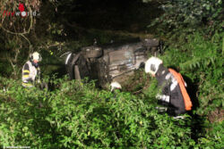 Die Lenkerin eines Pkw kam von der Straße ab, fuhr knapp an einem Brückengeländer vorbei in einen mit Bäumen und Sträuchern bewachsenen Graben, drehte sich dabei einmal um 180 Grad entgegen der ursprünglichen Richtung und blieb seitlich auf der Beifahrerseite liegen. Ein zufällig vorbeikommender Kamerad aus Wagna alarmierte umgehend die Rettungskräfte und leistete erste Sofortmaßnahmen.