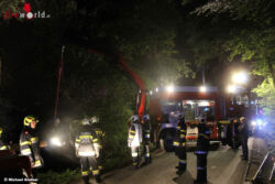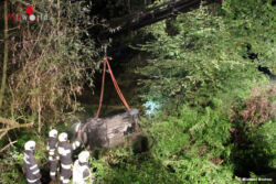 SRF-Kran wieder zurück auf die Straße gehoben werden. Der schwer beschädigte Wagen wurde von einem Abschleppunternehmen abtransportiert.