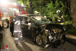 Die Dame wurde von den Feuerwehren Wagna und Leitring aus dem Wagen befreit und mit Verletzungen unbestimmten Grades vom Roten Kreuz ins LKH Wagna eingeliefert. Sie war jedoch glücklicherweise ansprechbar. Der Wagen lag rund zehn Meter im Graben, konnte jedoch mit dem