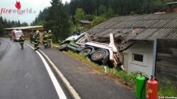 Ktn: Lkw stürzt auf ein Wohnhaus