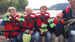 Als Andenken an diesen aufregenden Tag, den Martin dem Versand seiner Flaschenpost zu verdanken hat, überreichte ihm der Kommandant noch einen Feuerwehrhelm und das Maskottchen der Feuerwehrjugend Langenzersdorf, bevor es mit dem Boot wieder zurück ging.
