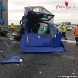 Nö: Kollision mit drei Lkw auf der A1 bei Neulengbach → Fahrerkabine bei einem Lkw abgerissen