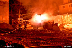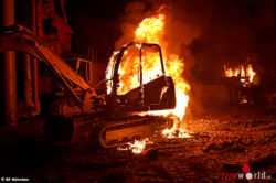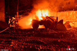 Anwohner und Passanten bemerkten gegen drei Uhr morgens, dass auf einer Baustelle ein Brand ausgebrochen ist. Mehrere Anrufe erreichten daraufhin die Integrierte Leitstelle der Berufsfeuerwehr. Als die Einsatzkräfte der Hauptfeuerwache eintrafen, fanden sie einen Radlader und einen Kettenbagger in Vollbrand vor.
