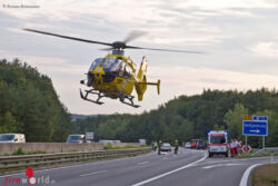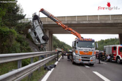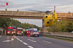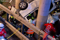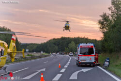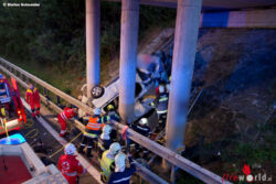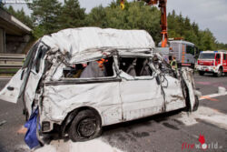 Drei weitere Personen, darunter auch ein junges Mädchen, konnten jedoch erfolgreich befreit, versorgt und abtransportiert werden. Mittlerweile ist bestätigt, dass alle drei, trotz teils schwerwiegender Verletzungen, stabil und somit außer Lebensgefahr sind. Bei dem Unfall konnten mehrere nachkommende Fahrzeuge in der Dunkelheit, den auf der Fahrbahn liegenden Wrackteilen, nicht mehr ausweichen. Eine aus dem verunfallten Kleinbus auf die Fahrbahn herausgeschleuderte Person wurde dabei ebenfalls erfasst. Vor allem bei Unfällen mit Todesfolge und unbekannter Unfallursache muss eine sehr aufwändige und zeitintensive Unfallaufnahme durch die Polizei erfolgen. Da sich die Unfallstelle auf über 200m erstreckte, kam auch ein Polizeihubschrauber zur Foto-Dokumentation aus der Luft zum Einsatz.