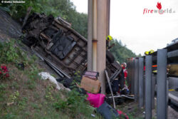 Erst nach der Freigabe des Wracks und der Unfallstelle konnte mit der Bergung der Verstorbenen, begonnen werden. Hier waren es wieder die Feuerwehrkräfte, die die Aufgabe hatten, das anwesende Bestattungsunternehmen bei der Bergung der Opfer zu unterstützen. Zwischenzeitlich mussten auch auslaufende Betriebsmittel gebunden werden.