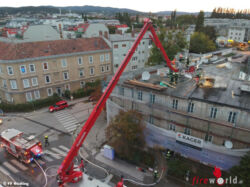 MÖDLING (NÖ): Zweiter Brandeinsatz innerhalb von 24 Stunden für die Freiwillige Feuerwehr Mödling. Um 18:40 Uhr des 12. September 2017 wurde die Feuerwehr von mehreren Anrufern über ein stark rauchendes Dach in unmittelbarer Nähe des Feuerwehrhauses in Kenntnis gesetzt.