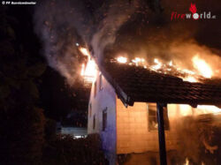 Das Haus, das von einem Ehepaar bewohnt wurde, dürfte laut Informationen der Polizei gegen 3.00 Uhr im Außenbereich zu brennen begonnen haben. Das Feuer griff auf die Dachkonstruktion über.