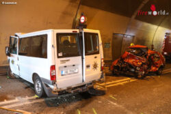 "Die Alarmierung war Verkehrsunfall mit eingeklemmter Person, ein Kleintransporter beteiligt. Wir sind dann vorgefahren zur Unfallstelle, die sich im Falkensteintunnel befindet, der derzeit noch mit Gegenverkehr geführt wird. Wir sind realtiv gut durchgekommen, die nachrückenden Feuerwehren hatten wieder Probleme mit der Rettungsgasse um an die Unfallstelle zu kommen. Eine Person (19 Jahre jung) war eingeklemmt und bereits verstorben. Acht Verletzte befanden sich im Kleinbus. Rettungsdienst und Notarzt waren schon vor Ort und haben die Verletzten schon betreut. Wir haben dann unterstützt," schildert Bernhard Schwarz, Einsatzleiter der Feuerwehr St. Pankraz.