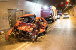 ST. PANKRATZ (OÖ): Ein Toter und acht teils Schwerverletzte ist die Bilanz eines Frontalcrashs im Falkensteintunnel auf der Pyhrnautobahn bei St. Pankraz (Bezirk Kirchdorf an der Krems) am 13. September 2017. Ein PKW-Lenker dürfte ersten Informationen zufolge vermutlich auf die Gegenfahrbahn gekommen sein und kollidierte frontal mit einem Kleinbus. Für den jungen Autolenker des Pkw kam leider jede Hilfe zu spät.