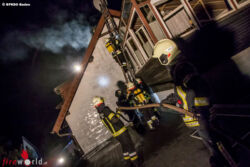 Nur kurz darauf langten weitere Meldungen über Notruf 122 bei der Feuerwehr Bezirksalarmzentrale (BAZ) Baden ein, wobei nun bereits von Flammen schlagen aus dem Dachstuhl gesprochen wird. Aufgrund dessen erhöht der diensthabende Leitstellendisponent die Alarmstufe auf B3 mit dem Lagebild Dachstuhlbrand und alarmierte weitere Feuerwehren.