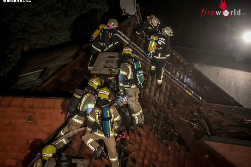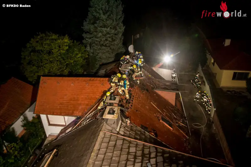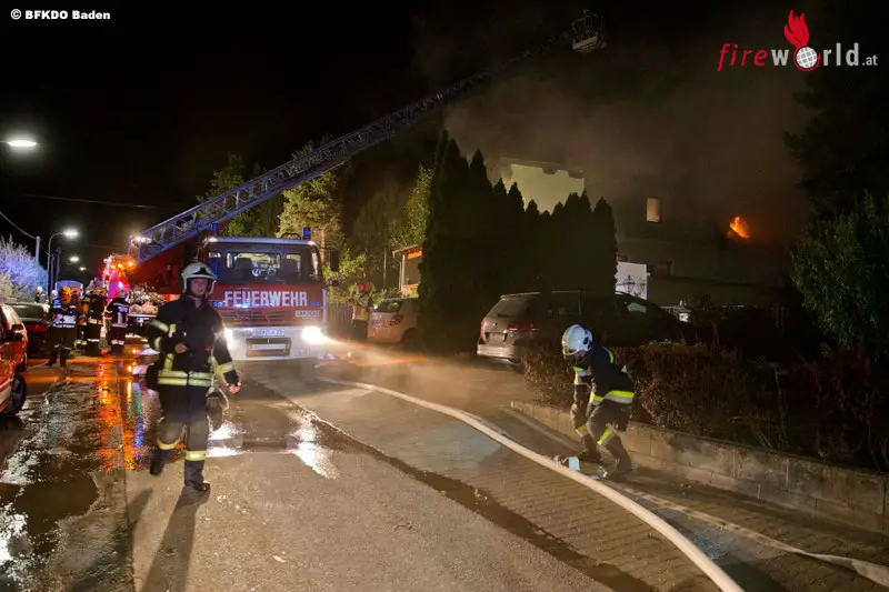 Nur kurz darauf langten weitere Meldungen über Notruf 122 bei der Feuerwehr Bezirksalarmzentrale (BAZ) Baden ein, wobei nun bereits von Flammen schlagen aus dem Dachstuhl gesprochen wird. Aufgrund dessen erhöht der diensthabende Leitstellendisponent die Alarmstufe auf B3 mit dem Lagebild Dachstuhlbrand und alarmierte weitere Feuerwehren.