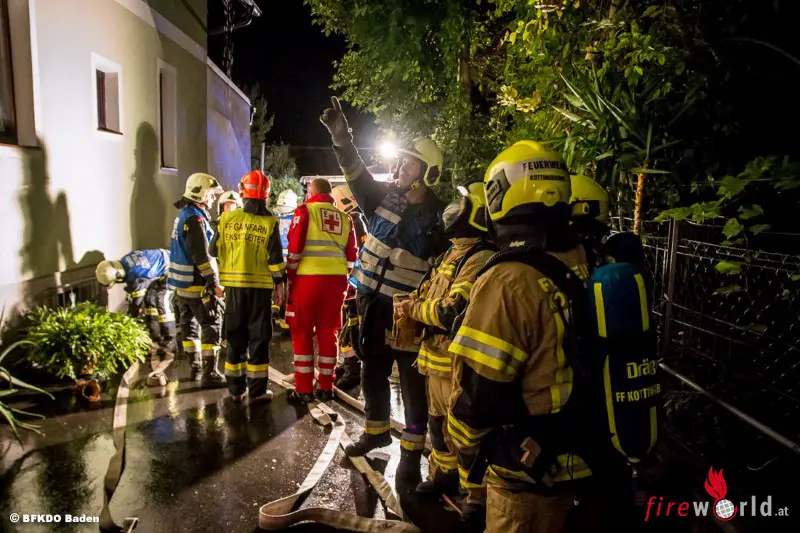 GAINFARN (NÖ): Dramatische Szenen spielten sich kurz nach Mitternacht am 15. September 2017 bei einem Brand in einem Wohnhaus in Gainfarn (Bezirk Baden) ab. Gegen ca. 00:07 Uhr wurde die örtliche Freiwillige Feuerwehr Gainfarn und die FF Stadt Bad Vöslau zu einem Zimmerbrand mit Personenrettung alarmiert.