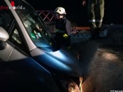 Oö: Pkw stürzt bei einer Brückenbaustelle in die Baugrube