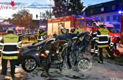 MÜNCHEN (D): Am Abend des 16. Septembers 2017 kam es im Münchner Stadtteil Trudering-Riem zu einem schweren Verkehrsunfall bei dem zwei Menschen ums Leben kamen. Die Berufsfeuerwehr München wurde gemeinsam mit der Freiwilligen Feuerwehr Waldtrudering und dem Rettungsdienst um 19.32 Uhr zu dem Einsatz alarmiert.