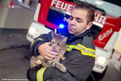 Kunststoffbehälter waren dort in Brand geraten und verursachten auch eine starke Rauchentwicklung. Die junge Hauskatze des Mieters wurde eingefangen und auch durch die Feuerwehr in Sicherheit gebracht. Der Bewohner der Wohnung wurde von den ebenfalls alarmierten Rettungskräften erstversorgt und mit Verdacht einer Rauchgasvergiftung ins Spital eingeliefert. Eine Angehörige nahm die unverletzte Katze in Obhut.
